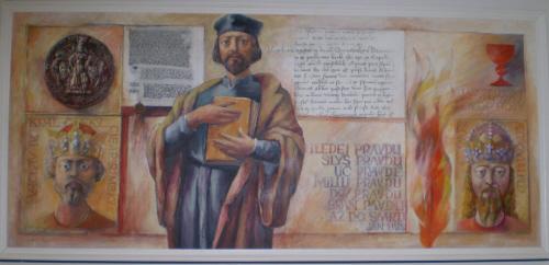 Pro zajímavost zasílám obrazy protagonistů husitské revoluce zdobící závodní jídelnu v suterénu novostavby Národního archivu v Praze na Chodovci.