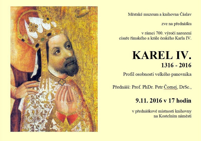 Ve středu 9. listopadu 2016 prof. Čornej přednáší v Čáslavi o Karlu IV ...