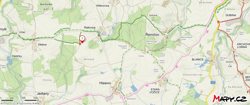 Zelená hora (nejvyšší kopec v dáli)Příloha: