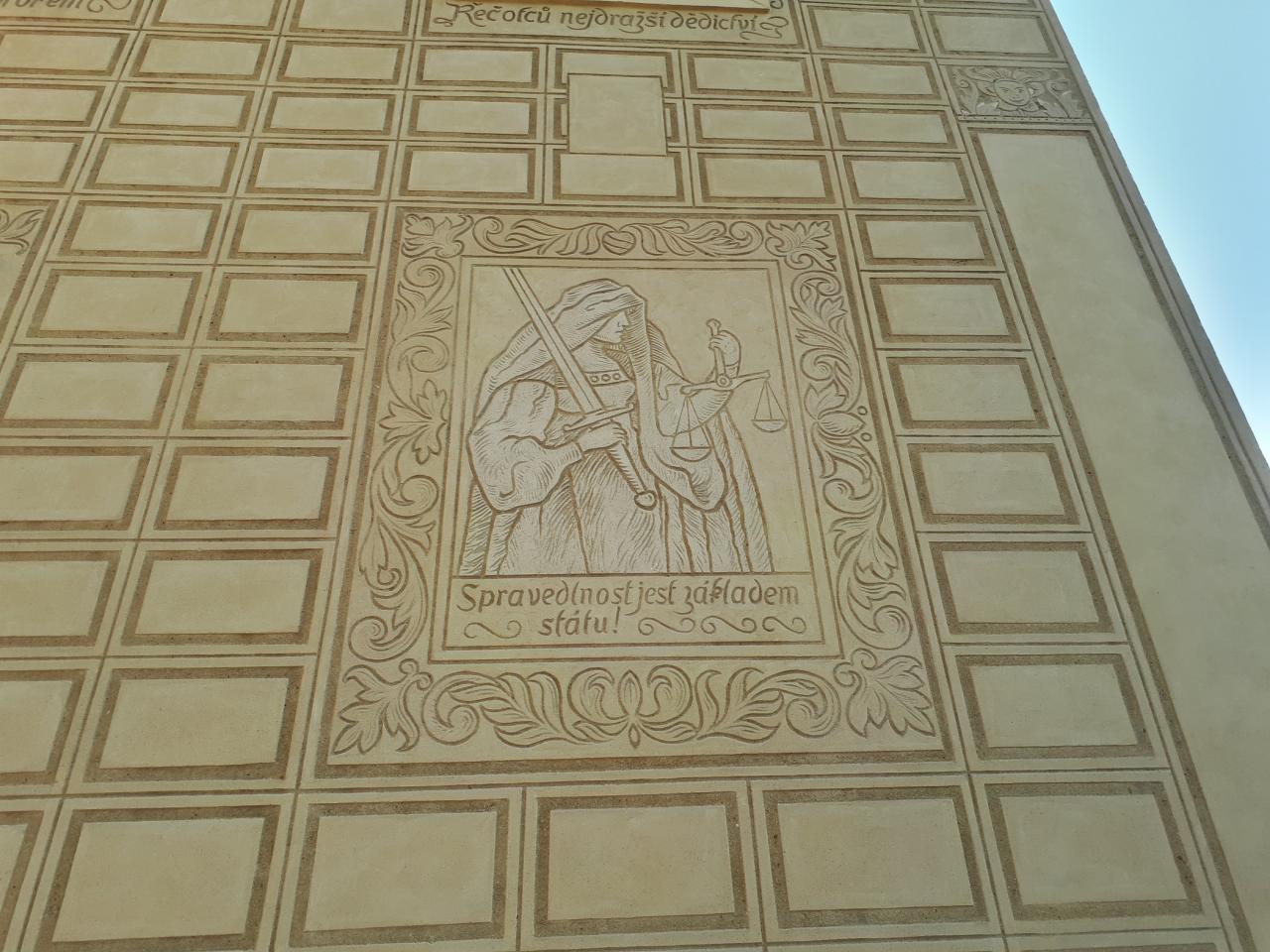 nástěnný obraz s názvem Žižkovo zrození, který vytvořil u vchodu do školy přímo do fasády.