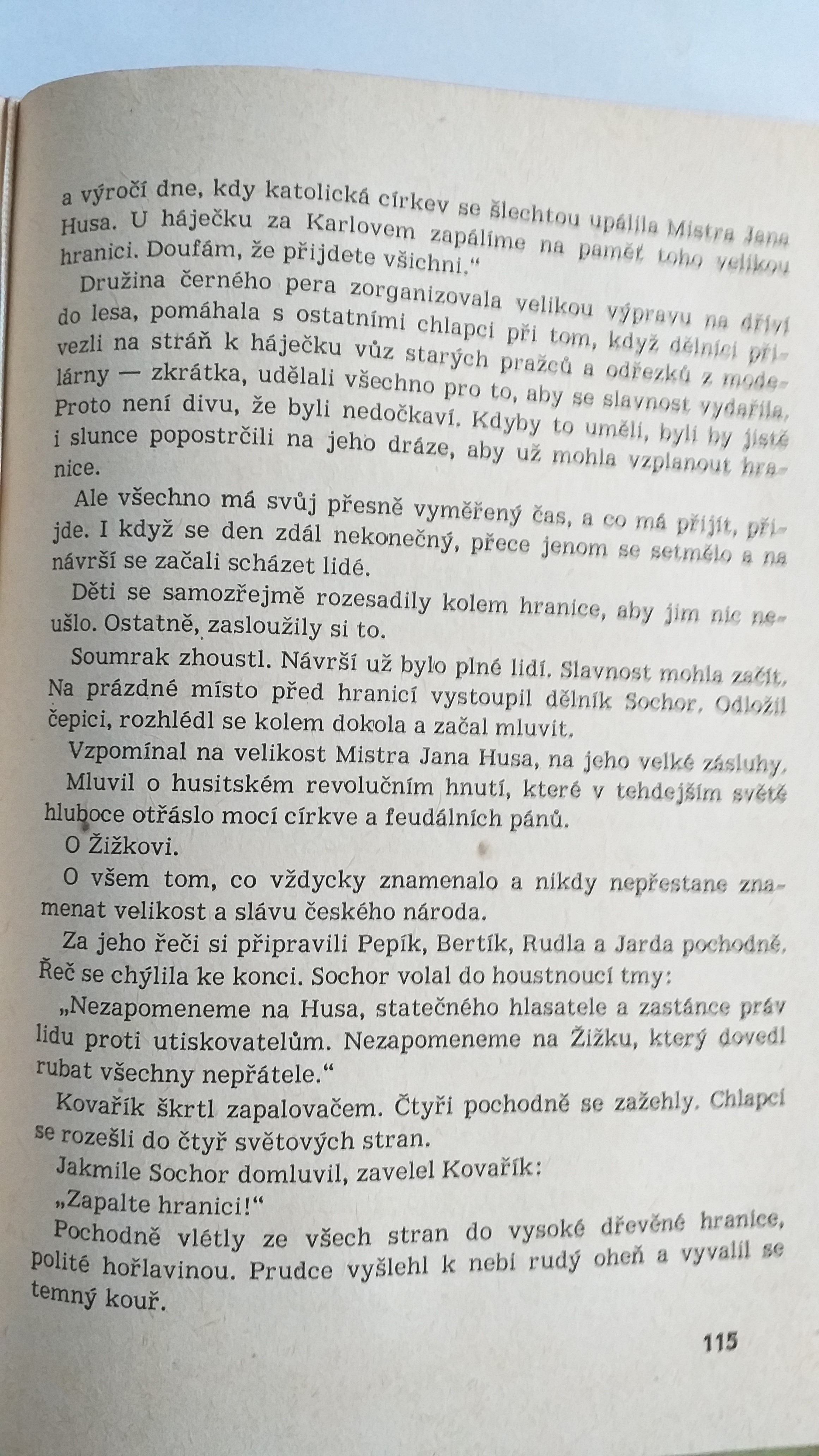 V knize Družina černého pera je vzpomínka na mistra Jana Husa, který také bojoval za lepší svět. Děj je z doby po 1. světové válce.
